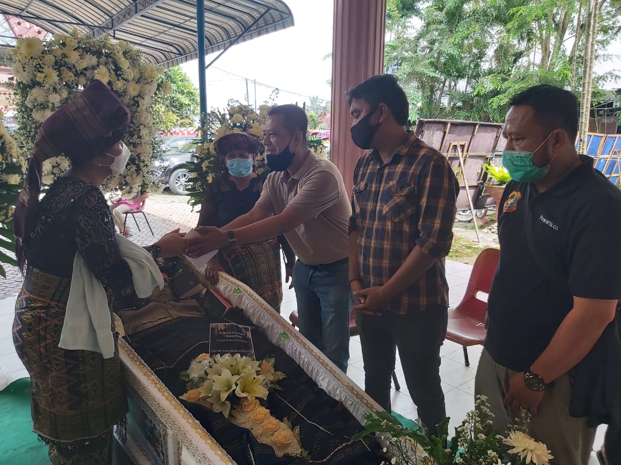 Ketua Pewata Polrestabes Medan, Chairum Lubis SH didampingi Wakil Pewarta Khairunnas dan Abdul Meliala melayat kerumah duka Bripka Robby Pratama Sembiring SE (35) di Jalan Irigasi Medan Tuntungan .