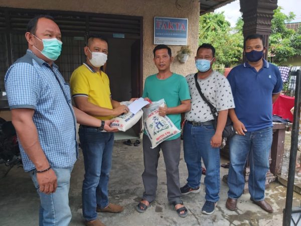 Dalam kesempatan itu, pria yang memiliki jiwa sosial tinggi ini menyerahkan bantuan sembako berupa 2 Goni beras dan uang.