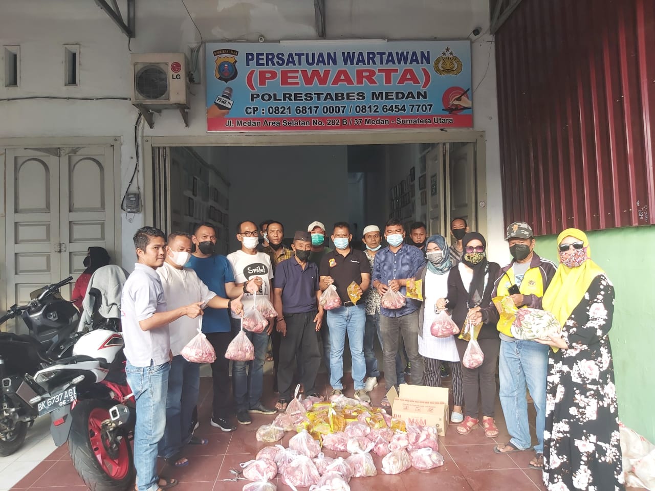 ANAKMEDANBUNG.COMWujud kebersamaan dalam mensukseskan perayaan Idul Adha Adha1442 H. Kali ini, Ketua Pewarta Polrestabes Medan membaginya puluhan daging kurban kepada pengurus dan anggota. Daging kurban yang diberikan itu bantuan dari Waka Polda Sumut Brigjen Pol Dr Dadang Hartanto SH SIK MSi dan Ka Rutan I Medan Theo Adrianus Purba, Amd, IP, SH, MH.