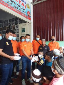 Saat membagikan nasi kotak dan santunan tersebut, Ketua Pewarta Polrestabes Medan Chairum Lubis, SH didampingi, Wakil Ketua Khairunnas dan sejumlah pengurus dan anggota lainnya Dedi Irwandi Lubis, Bardansyah, Surya Irwandi Nasution, Zek, Frangky, Abdul Meliala, dan Ilham.