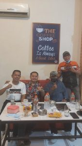 Malam itu, Denny menjamu kami dengan minuman kopi sanger (saling ngerti). Di sebuah kafe di Kota Rantau Prapat, Labuhan Batu. Bersamanya; ikut Martualesi Sitepu dan Parikhest.