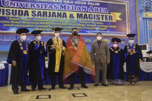 Turut hadir, Ketua Pengurus Yayasan Pendidikan Haji Agus Salim bapak Drs M Erwin Siregar, MBA, Rektor UMA Prof Dr Dadan Ramdan MEng MSc, Kepala Lembaga Layanan Pendidikan Tinggi Wilayah I Sumut Prof Dr Ibnu Hajar MSi, para Wakil Rektor dan Guru besar UMA, para Dosen dan tenaga Kependidikan serta seluruh Civitas Akademika Universitas Medan Area, orang tua, keluarga dan para wisudawan