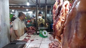 Dirut pertama kali mengecek harga daging sapi. Diketahui harga sapi masih normal yakni Rp130 ribu/kg. Dari penjual daging, Dirut dan rombongan mengecek harga daging ayam ras Rp38 ribu/kg. Selanjutnya harga telur ayam Rp1.600.
