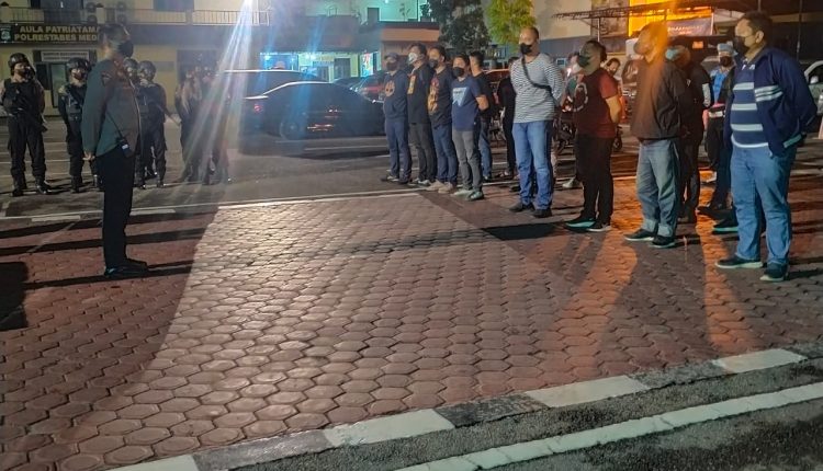Polrestabes Medan menggelar patroli guna mengantisipasi aksi kejahatan jalan, balap liar dan geng motor di Medan, Minggu (15/5/2022) dinihari.