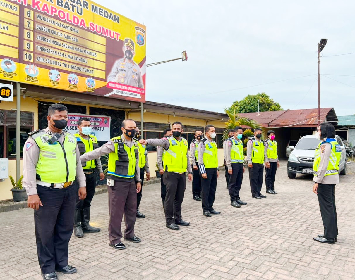 Sebelum melakulan pengamanan dan penjagaan jalur wisata Medan-Berastagi, personel terlebih dahulu melakukan apel personel Pam jalur yang dipimpin Padal Ipda Udur Roselina Siagian yang menjabat Kasubnit II Kamsel Sat Lantas Polrestabes Medan.