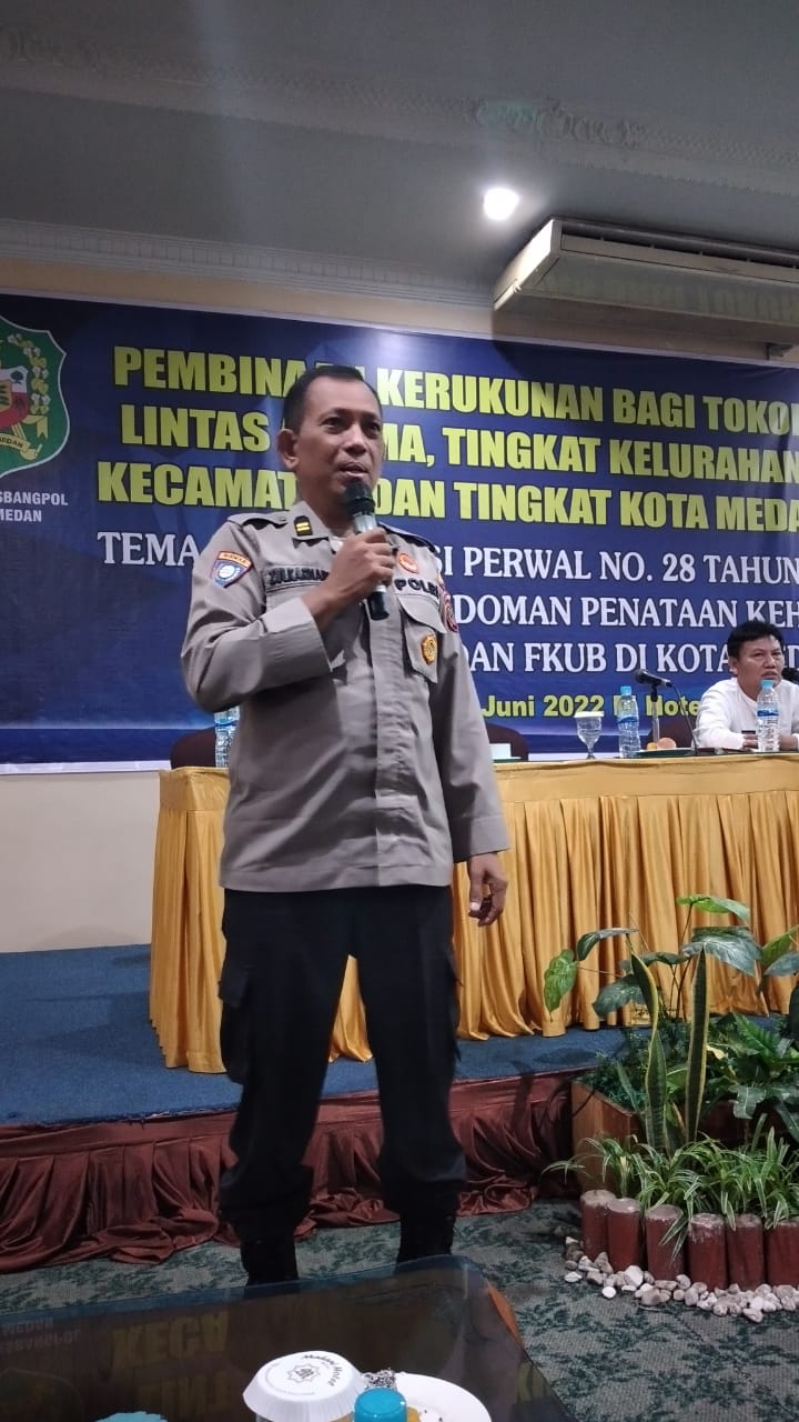 Sat Binmas Polrestabes Medan menjadi narasumber dalam acara seminar Pembinaan Kerukunan Bagi Tokoh Lintas Agama Tingkat Kelurahan, Kecamatan dan Kota Medan.