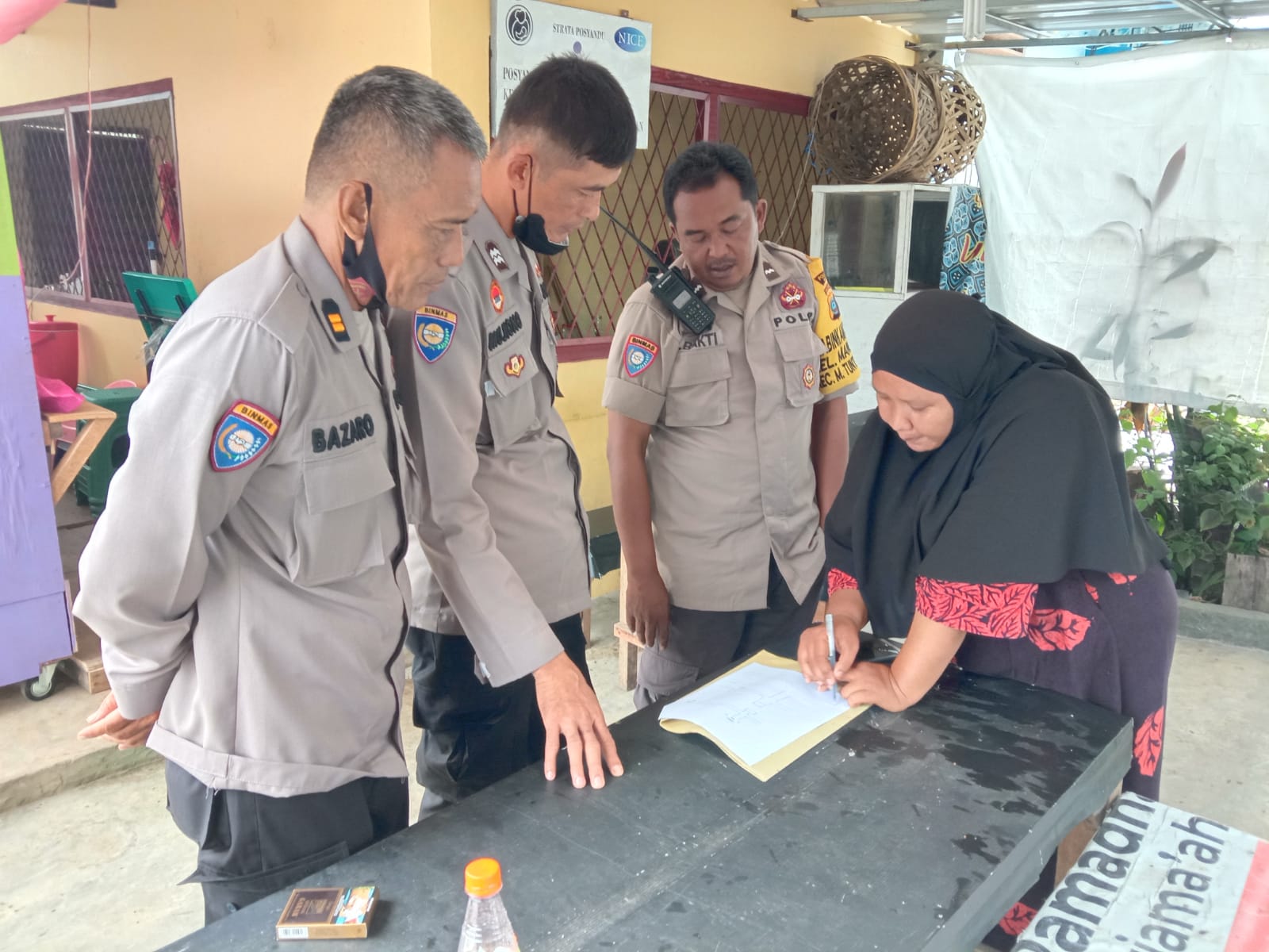 Personel Sat Binmas Polrestabes Medan mengecek di Poskamling XI Jalan Teh Perumahan Simalingkar, Kelurahan Mangga, Kecamatan Medan Tuntungan.