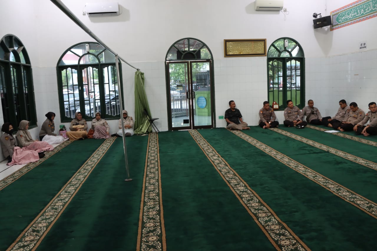 Personel Polrestabes Medan ikuti bimbingan rohani dan mental di masjid Nurul Falah, Jalan HM Said, Medan, Kamis (23/6/2022).