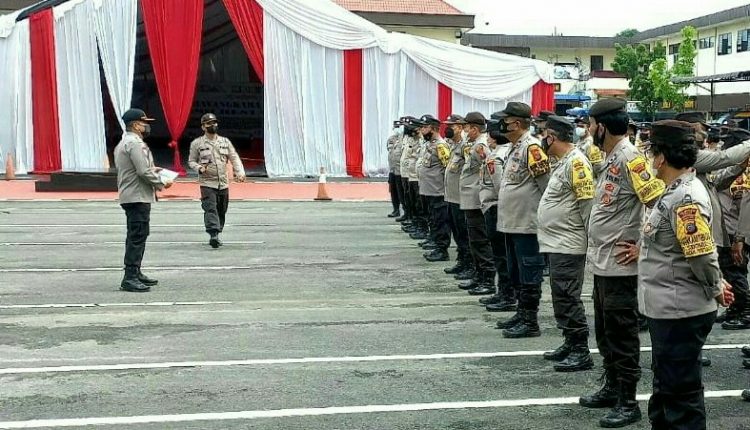Kapolrestabes Medan Kombes Pol Valentino Alfa Tatareda memberikan arahan kepada personel Bhabinkamtibmas di lapangan apel Polrestabes Medan Jalan HM Said Medan, Kamis (23/6/2022).