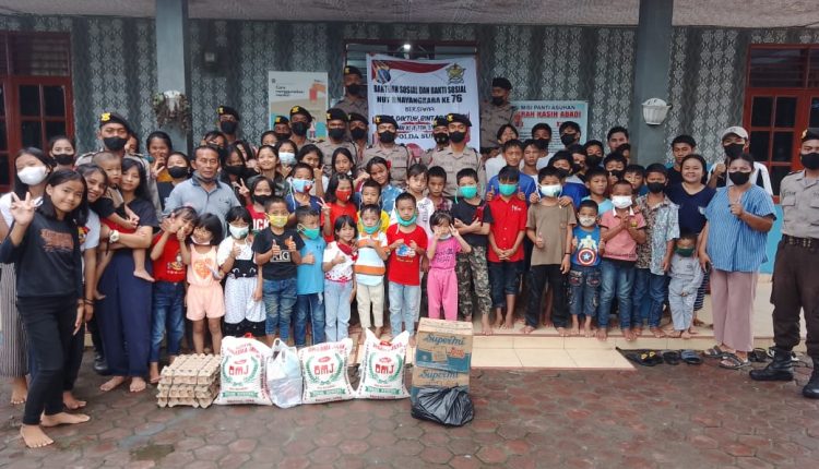 Jelang HUT Bhayangkara ke 76, Polsek Percut Sei Tuan melaksanakan Jumat Baroqah dan Bhakti Sosial dengan berbagi sembako kepada anak yatim piatu dan panti asuhan Anugerah Kasih di Desa Sampali Gang Tawon, Kecamatan Percut Sei Tuan, Jumat (24/6/2022) siang.