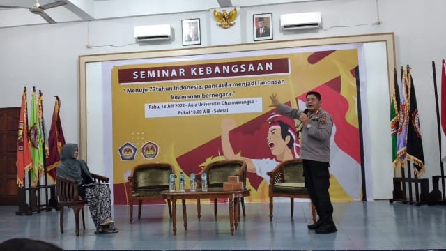 Polrestabes Medan menghadiri acara seminar kebangsaan “Menuju 77 Tahun Indonesia, Pancasila Menjadi Landasan Keamanan Bernegara” di Universitas Dharmawangsa Jalan KL Yos Sudarso Medan, Rabu (13/7/2022).