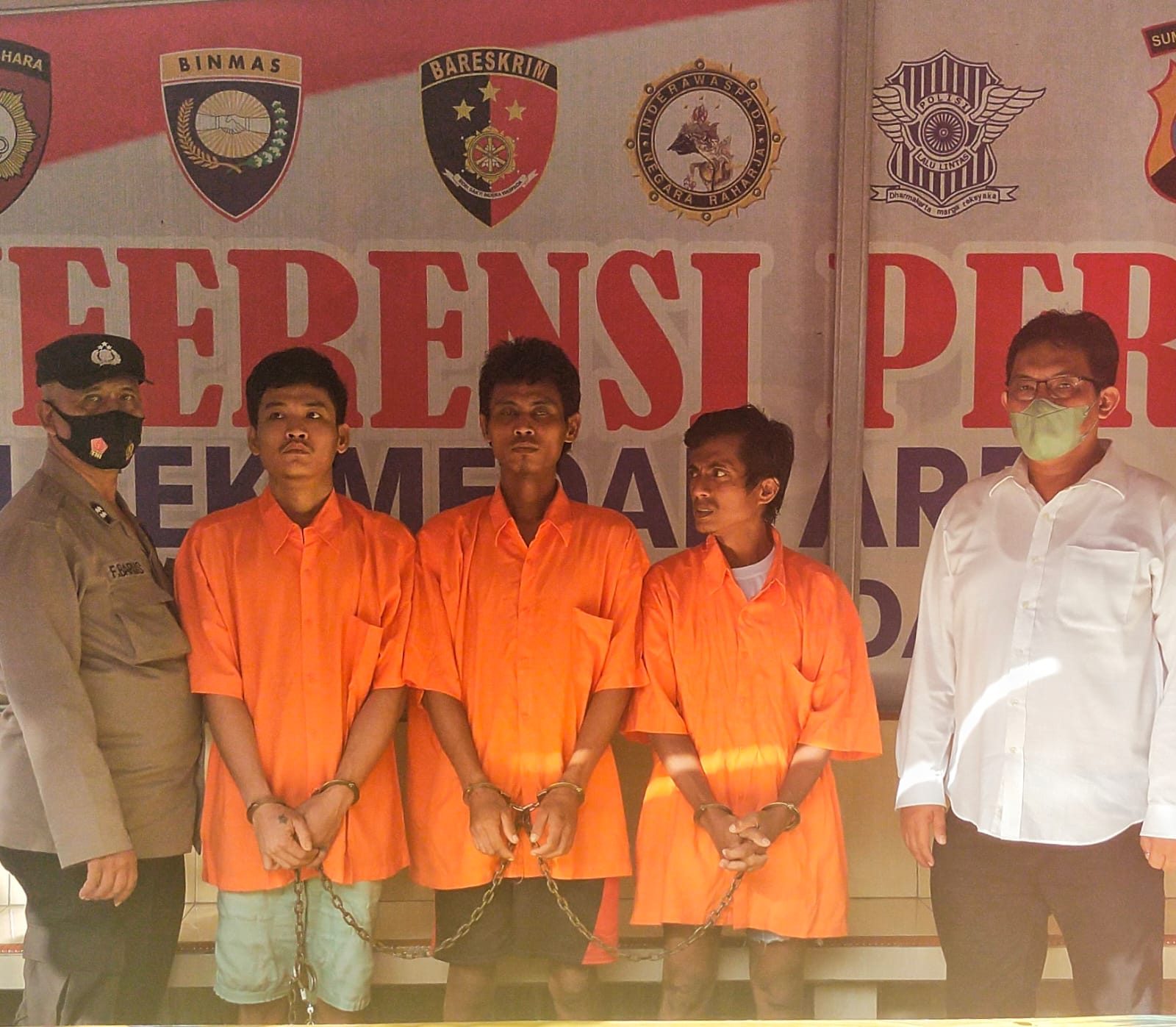Ketiga pelaku, M Yazid Harahap (34) warga Jalak IV Perumnas Mandala No. 166 Kelurahan Tegal Sari Mandala II Kecamatan Medan Denai, Bily Johanes Zebua (26) Jalan Tuar Indah Blok IX Kelurahan Besar Kecaman Medan Labuhan Kabupaten Deli Serdang dan Zulfan Lubis (42) warga Jalan Rahmadsyah Gang Dame No. 20-B Kelurahan Kota Matsum I Kecamatan Medan Area.