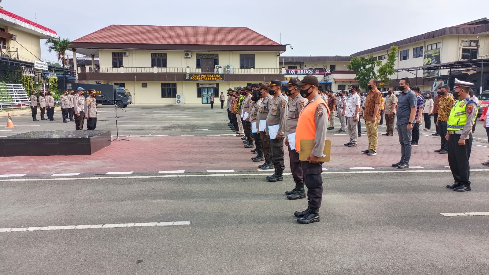 Apel pagi turut dihadiri oleh PJU Polrestabes Medan dan diikuti oleh personel Pama, Brigadir, dan ASN.