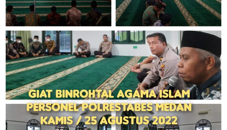 Polrestabes Medan melaksanaan Pembinaan Rohani dan Mental (Binrohtal) kepada personel Polrestabes Medan yang beragama Islam dan Kristen, Kamis, 25 Agustus 2022.