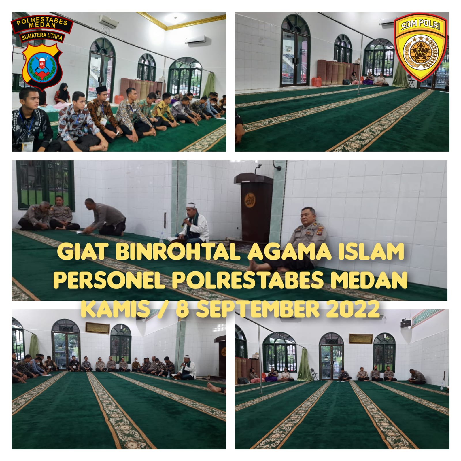 Sedangkan Binrohtal bagi personel yang beragama Islam dilakukan di dalam Mesjid Nurul Falah Polrestabes Medan.