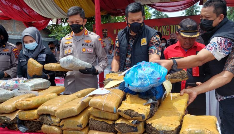 Polisi Ciduk 9 Kurir Narkoba, Barang Buktinya 84 Kg Ganja Dibakar