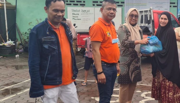 Reskrim Polrestabes Medan Bersama Pewarta Gulirkan Sembako Pada Warga Kurang Mampu di Jalan Bromo