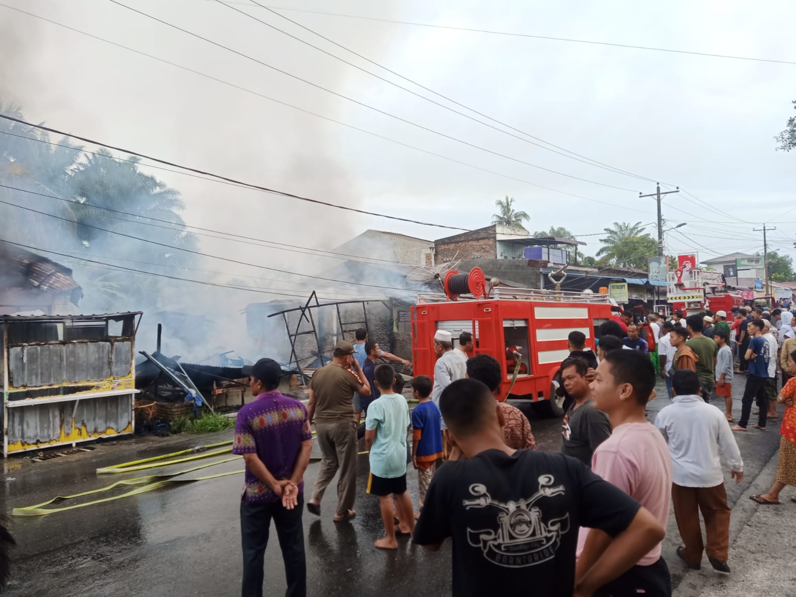 Enam unit rumah permanen di lalap si jago merah di Jalan KH Dewantara/Jalan Rantau lama, Lingkungan Rantau Lama, Kel. Bakaranbatu, Kec Rantau Selatan, Kab. Labuhanbatu.