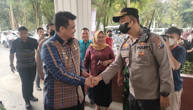 Kapolsek Percut Sei Tuan Kompol M Agustiawan ST SIK memimpin pengamanan pembukaan pertandingan Open Tournament Karate Pelajar Championship SISTER CITY CUP, Piala Walikota Medan di Gedung Serbaguna UNIMED Jalan Willem Iskandar, Desa Medan Estate, Kecamatan Percut Sei Tuan, Jumat (02/12/2022) pagi.