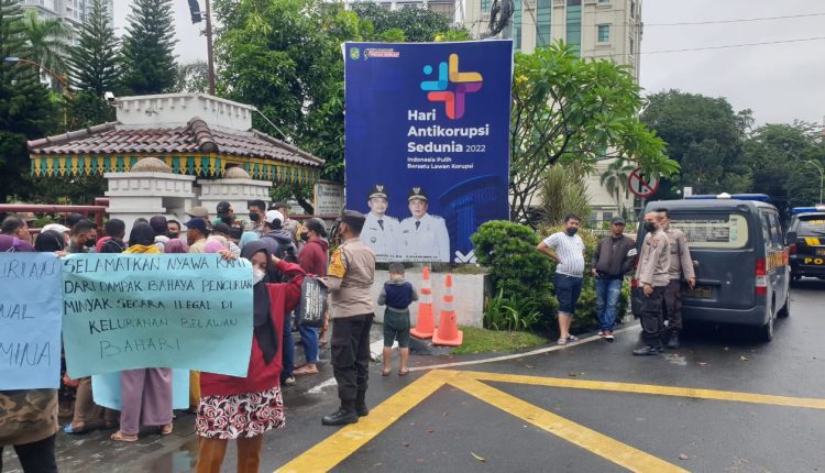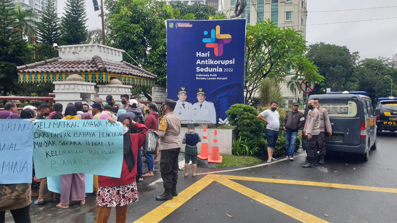 Puluhan massa dari Simpang Canang, Kelurahan Belawan Bahri, Kecamatan Medan Belawan geruduk kantor Walikota di Jalan Kapten Maulana Lubis. Massa meminta para pelaku pencurian minyak di kanal pipa Pertamina yang berada di Lingkungan 8,9,10 dan 10 Simpang Sicanang, Kelurahan Belawan Bahri, Kecamatan Medan Belawan ditangkap. “Sangat meresahkan, polisi harus cepat menangkap para pelakunya yang diduga warga setempat, ” ucap