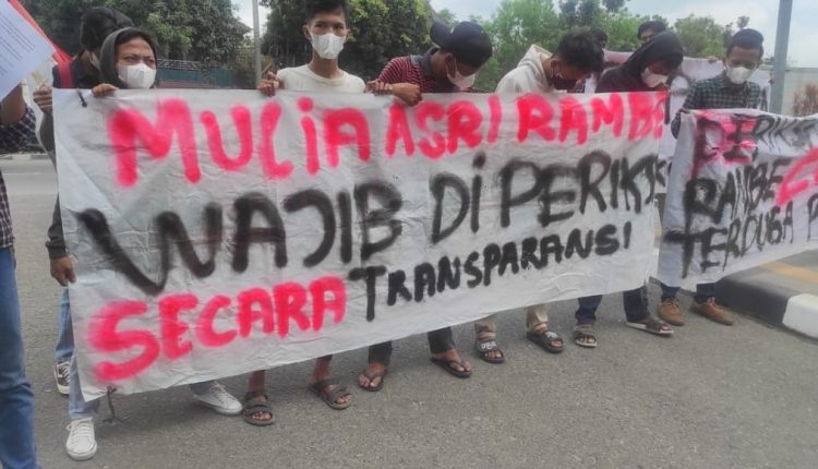 Dengan mendapat pengawalan petugas, massa pengunjukrasa langsung menggelar aksinya dengan membentangkan spanduk bertuliskan ” periksa Mulia Asri Rambe (MAR) terduga palsu ijazah, Mulia Asri Rambe wajib diperiksa secara transparan dan RIP Ijazah periksa oknum yang terlibat “.