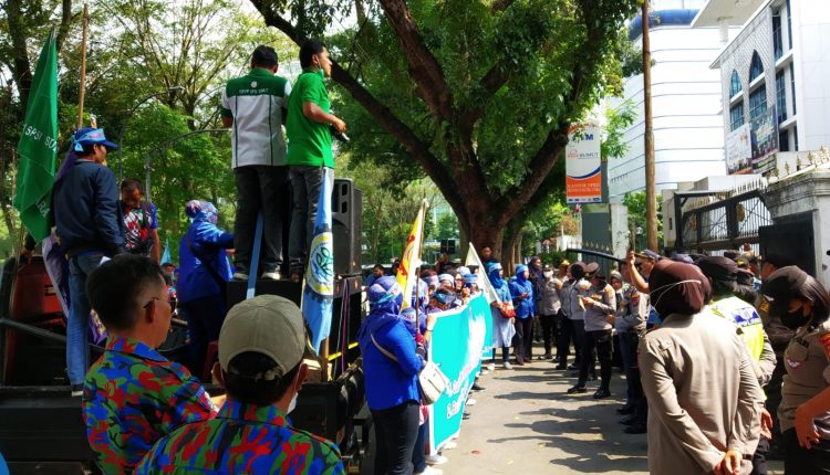 Polrestabes Medan Kawal Aksi Unjuk Rasa Masa Gabungan DPD SPSI di DPRD Sumut