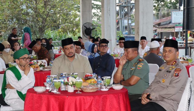 Kapolrestabes Medan Kombes Pol Valentino Alfa Tatareda, SIK, SH yang diwakili Wakapolrestabes Medan AKBP Dr. Yudhi Hery Setiawan, SIK, MSI menghadiri Kegiatan Safari Ramadhan 1444 H di Mesjid Ar-Rahman Jalan Marelan IX Keluraha Terjun Kecamatan Medan Marelan, Kamis (30/3/2023).