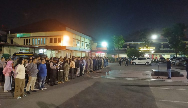 Tim gabungan Polrestabes Medan menggelar apel patroli gabungan di Lapangan Apel Polrestabes Medan Jalan HM Said Medan, Sabtu (1/4/2023) malam.