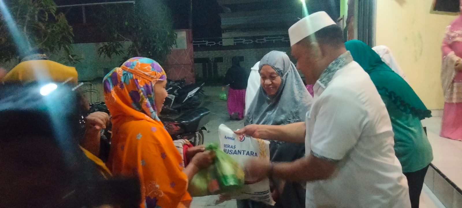 Sembako tersebut diberikan kepada warga Kelambir 5 Kebun Usai bakda isya sembari sholat tarawih di pondok tahfidz Assairun.