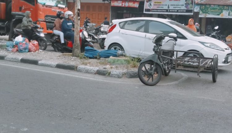 Terlihat jalan semrawut. Bahkan sampah-sampah bertumpukan diatas trotoar.