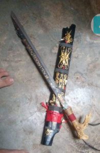 Emosi pelaku yang bekerja sebagai tukang tato alis itu langsung mengambil Mandau, senjata tajam tradisional suku Dayak Kalimantan Tengah, yang disimpannya di dalam kamar.