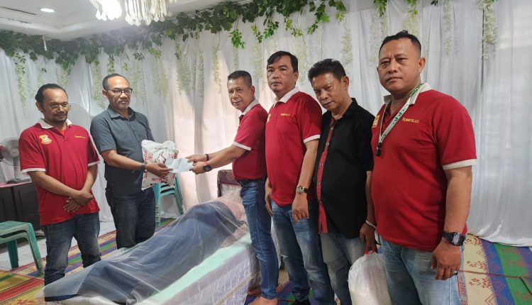 Di rumah duka, Ketua Pewarta Polrestabes Medan Chairum Lubis,SH memberikan Sembako berupa beras dan uang duka yang diterima Jhon Daniel Manik.