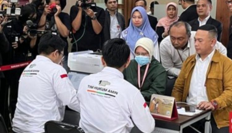 Pendaftaran gugatan itu diajukan oleh Tim Hukum Nasional (THN) AMIN. Pantauan mereka tiba di Gedung MK pada pukul 08.30 WIB.