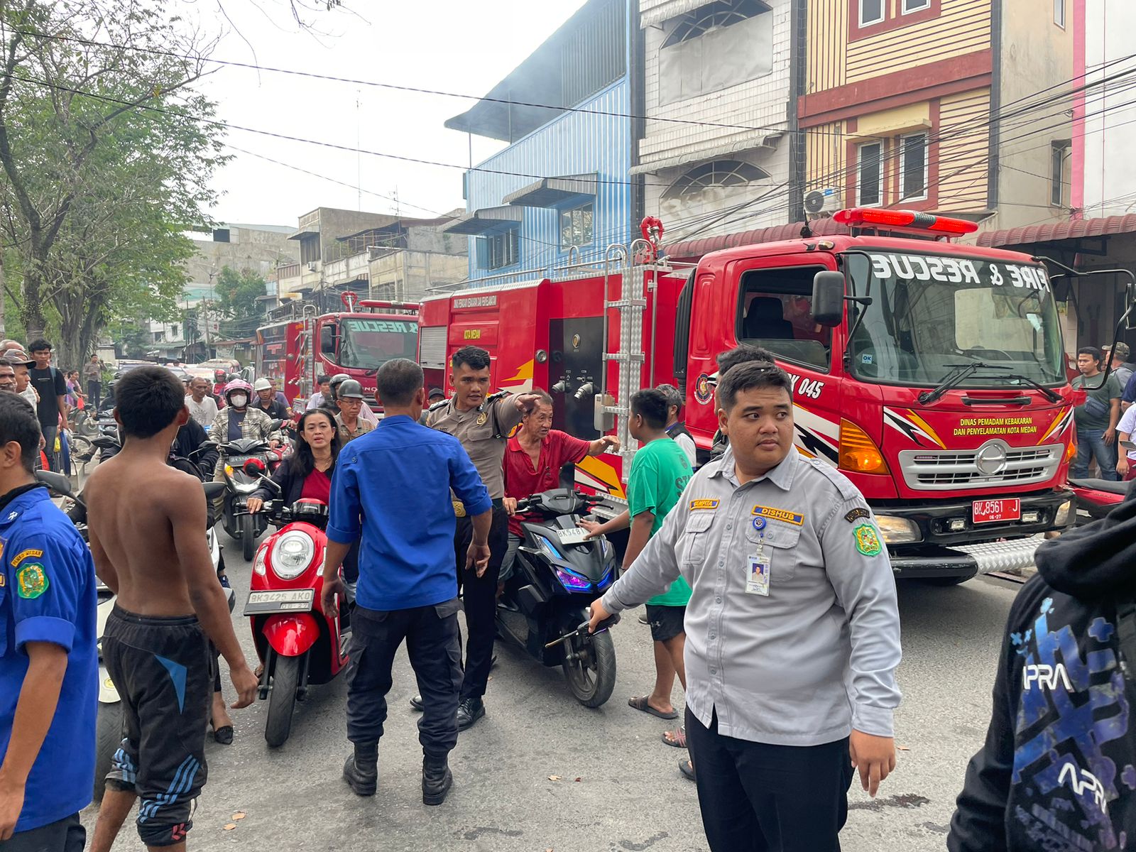 Personil Polsek Medan Area yang mendapat info adanya peristiwa kebakaran langsung menyambangi tempat kejadian.