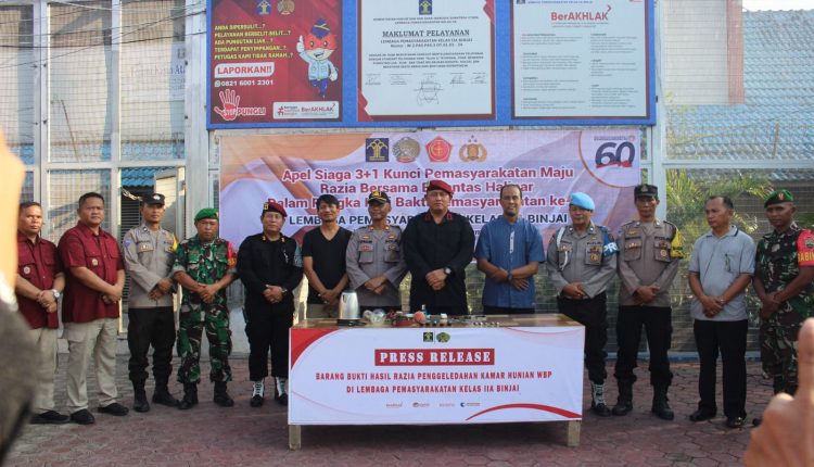 Lembaga Pemasyarakatan (Lapas) Kelas IIA Binjai gelar razia gabungan bersama Aparat Penegak Hukum (APH) lainnya, Kegiatan ini merupakan Rangkaian Kegiatan Peringatan Hari Bakti Pemasyarakatan Ke-60 Tahun 2024 dengan tema “Pemasyarakatan PASTI Berdampak”. Jum’at (05/04/2024)