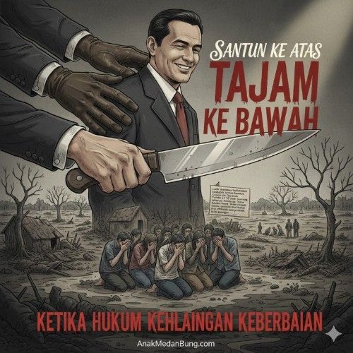 Dari satu saja fakta telanjang itu, ada rasa pahit yang tak bisa disangkal dengan kata-kata manis: alahai hukum di negeri ini sering tajam ke bawah, tapi santun ke atas —bahkan bertekuk lutut dalam ilusi kengerian.